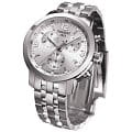 TISSOT T0554171103700 T-Sport PRC 200 Quartz Chronograph - мужские кварцевые наручные часы Корпус этих часов среднего размера (42 мм) и выполнен из нержавеющей стали L316 металлического цвета Модель TISSOT T0554171103700 T-Sport PRC 200 Quartz Chronograph имеет устойчивое к царапинам сапфировое стекло, браслет из нержавеющей стали металлического цвета, белый циферблат Калибр механизма: ETA G10211 Класс водозащиты: 200 м / 20 АТМ (разрешается нырять с аквалангом на глубину) Дополнительные функции и особенности: отображение числа, хронограф (секундомер), тахиметр Полная заводская комплектация TISSOT: оригинальные часы, фирменная коробка, инструкция, сервисная книжка, роман о часовой фабрике, миникаталог, замшевый фирменный чехол черного цвета для хранения и/или переноски часов, кассовый и товарный чеки Международная гарантия 2 года Производство и сборка: Швейцария