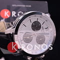 Модель сочетает в себе белый, чёрный, серебристый цвет, подобное исполнение позволяет носить их даже с одеждой самых смелых оттенков. Секундная стрелка выполнена в виде шпаги, необычный узор украшает массивный циферблат с дополнительными счётчиками хронографаХронографФункция позволяет измерять отрезки времени с особой точностью: часы, минуты, секунды. Верным признаком хронографа является наличие на циферблате 3 дополнительных окошек-счётчиков.. Кварцевый калибр ETA G10.211 с 4 камнями. Ремешок из натуральной кожи с тиснением под кожу крокодила. Стальной ударопрочный корпус. Хронограф, тахиметрТахиметрРазмеченная шкала, располагается на ободке или безеле часов. Тахиметр позволяет рассчитать скорость на определённом участке пути, расстояние измеряется в километрах или милях., секундомер, дата. Габариты: 41 x 42 x 12 мм.