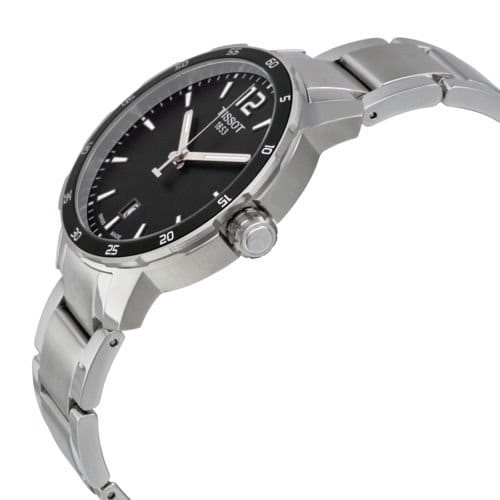 TISSOT T0954101105700 T-Sport Quickster Quartz - мужские кварцевые наручные часы Корпус этих часов среднего размера (40 мм) и выполнен из нержавеющей стали L316 металлического цвета Модель TISSOT T0954101105700 T-Sport Quickster Quartz имеет устойчивое к царапинам сапфировое стекло, браслет из нержавеющей стали металлического цвета, черный циферблат Калибр механизма: ETA F06111 Класс водозащиты: 100 м / 10 АТМ (разрешается плавание и ныряние без акваланга) Дополнительные функции и особенности: отображение числа Полная заводская комплектация TISSOT: оригинальные часы, фирменная коробка, инструкция, сервисная книжка, роман о часовой фабрике, миникаталог, замшевый фирменный чехол черного цвета для хранения и/или переноски часов, кассовый и товарный чеки Международная гарантия 2 года Производство и сборка: Швейцария