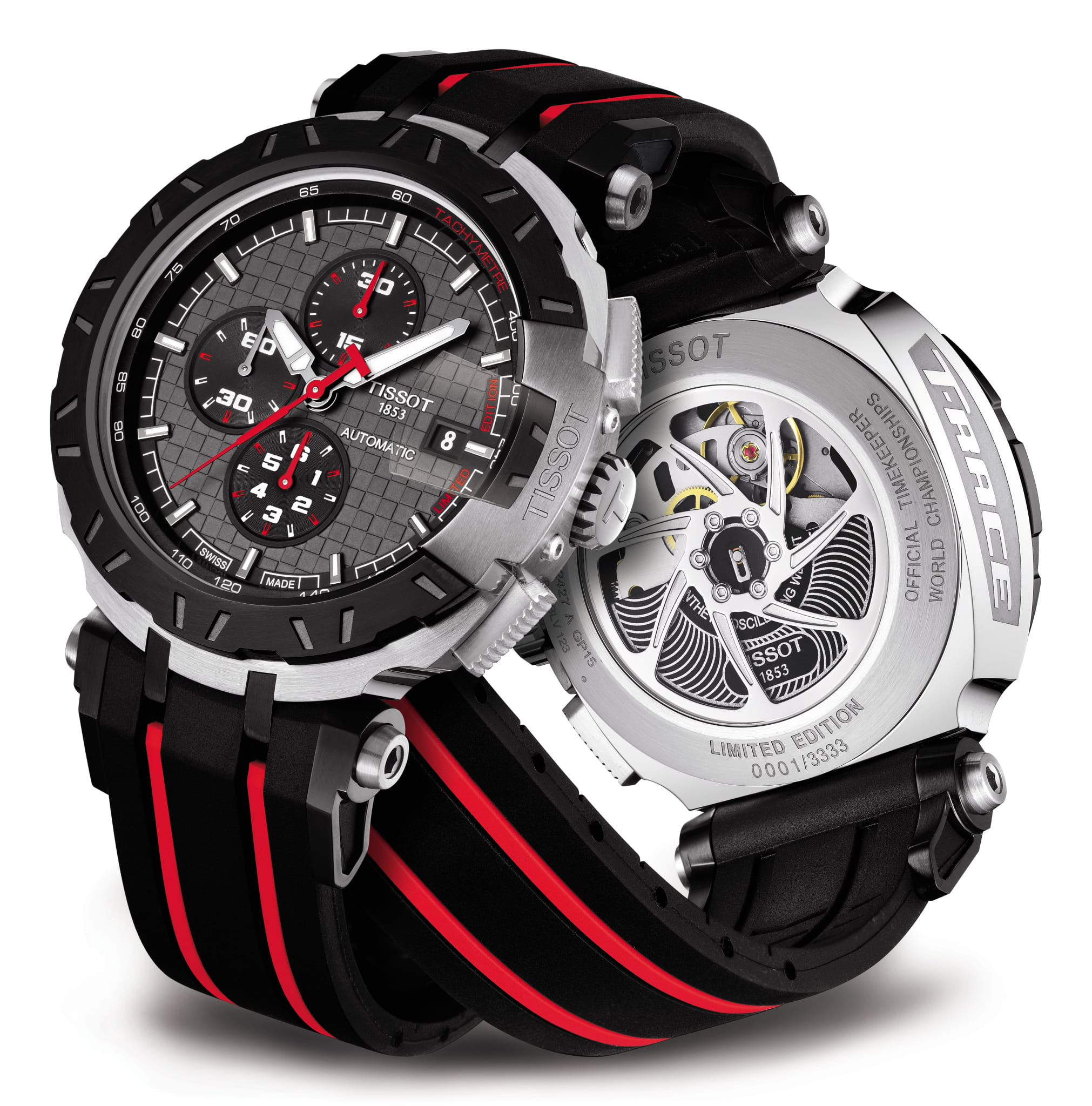 TISSOT T0924272706100 - мужские механические наручные часы Корпус этих часов крупного размера (45 мм) и выполнен из нержавеющей стали L316 Модель T0924272706100 имеет устойчивое к царапинам сапфировое стекло, ремешок из натурального каучука черного цвета, черный циферблат Калибр механизма: ETA G10211 Класс водозащиты: 100 м / 10 АТМ (разрешается плавание и ныряние без акваланга) Дополнительные функции и особенности: отображение числа, хронограф (секундомер) Ограниченная серия MotoGP Limited Edition Полная заводская комплектация TISSOT: оригинальные часы, фирменная коробка, инструкция, сервисная книжка, роман о часовой фабрике, миникаталог, замшевый фирменный чехол черного цвета для хранения и/или переноски часов, кассовый и товарный чеки Международная гарантия 2 года Производство и сборка: Швейцария