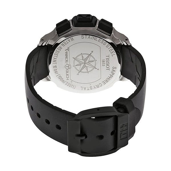 TISSOT T0814201705700 Touch Collection T-Race - мужские кварцевые наручные часы Корпус этих часов среднего размера (42 мм) и выполнен из нержавеющей стали L316 металлического цвета Модель TISSOT T0814201705700 Touch Collection T-Race имеет устойчивое к царапинам сапфировое стекло, ремешок из натурального каучука черного цвета, черный циферблат Калибр механизма: ETA E49301 Класс водозащиты: 100 м / 10 АТМ (разрешается плавание и ныряние без акваланга) Дополнительные функции и особенности: отображение числа, полностью автоматический календарь, второе время (GMT), будильник, хронограф (секундомер), таймер (обратный отсчет), отображение данных о приливах и отливах, компас, сенсорный дисплей Полная заводская комплектация TISSOT: оригинальные часы, фирменная коробка, инструкция, сервисная книжка, роман о часовой фабрике, миникаталог, замшевый фирменный чехол черного цвета для хранения и/или переноски часов, кассовый и товарный чеки Международная гарантия 2 года Производство и сборка: Швейцария