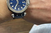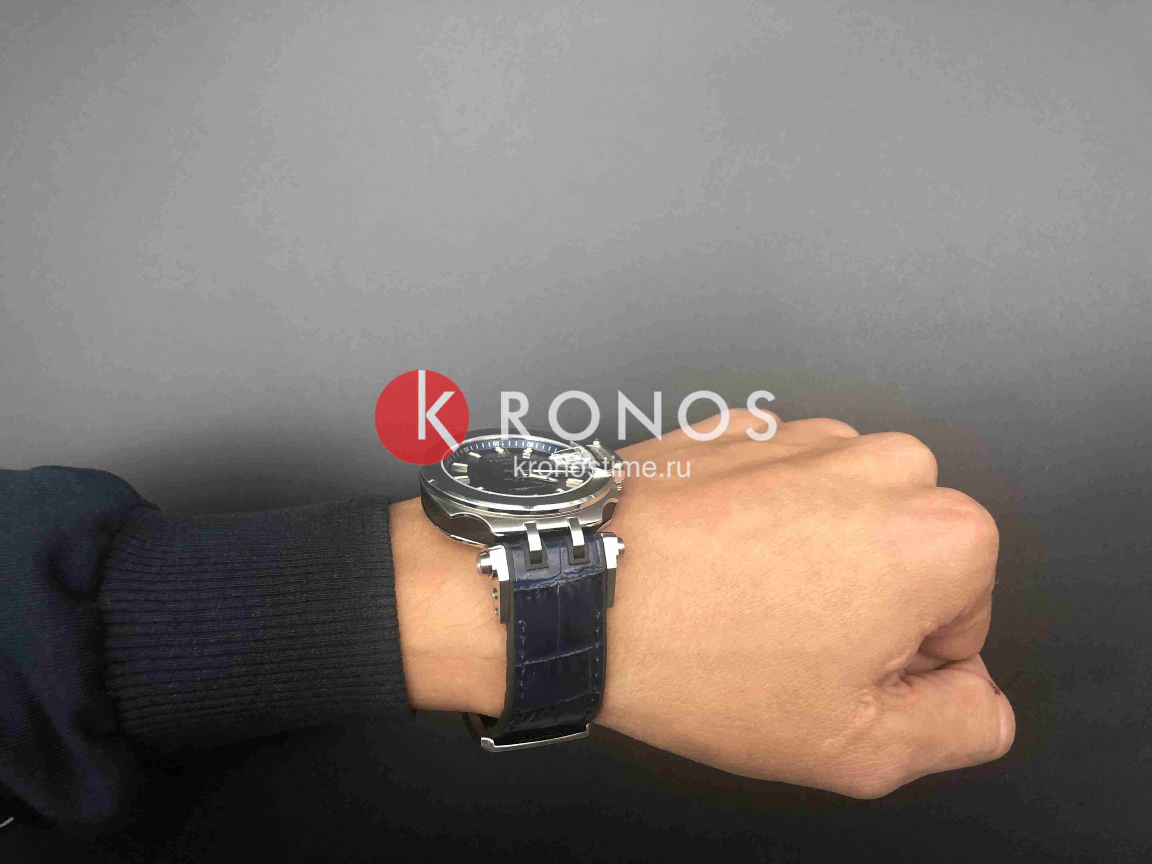 Модель отличается оригинальным внешним видом, дизайн оформлен в стиле мотоциклетного спорта. Синее исполнение добавит вам оригинальности и индивидуальности. Использованы современные прочные материалы: хирургическая сталь 316L, натуральная кожа, сапфировое стекло препятствует возникновению царапин. Автоматический калибр Swissmatic с запасом хода до 3 суток. Апертура даты. Габариты: 48,8 x 45 x 13,04 мм.