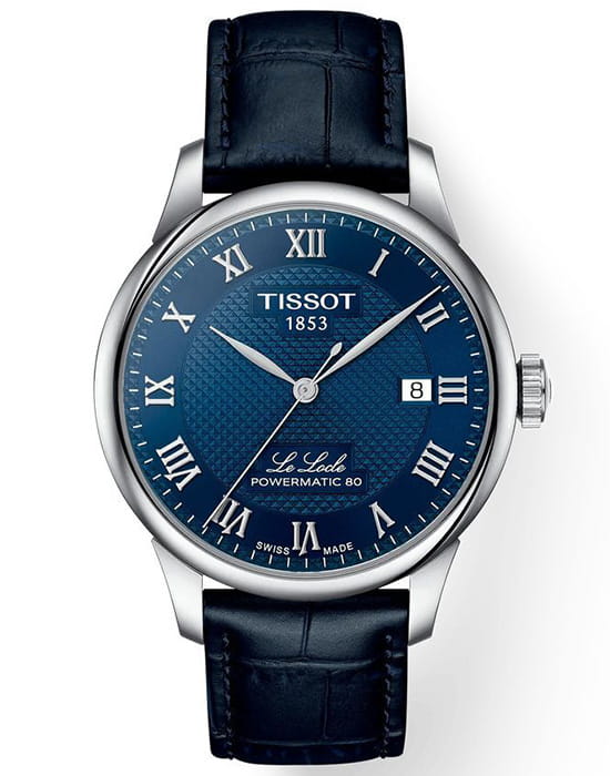Мужские наручные часы Tissot Le Locle Powermatic 80Powermatic 80Эксклюзивный калибр от швейцарской компании ETA с увеличенным запасом хода до 80 часов за счёт удлинённой заводной пружины. Характеризуется улучшенной системой спуска со сниженным трением. (модель T006.407.16.043.00) – воплощение элегантности и точности. Корпус из нержавеющей стали 316L диаметром 39,3 мм подчёркивает классический стиль, а прозрачная задняя крышка позволяет наблюдать за работой механизма. Глубокий циферблат с узором "clous de Paris" и римскими цифрами надёжно защищён сапфировым стекломСапфировое стеклоПрочный и надёжный материал из кристалла сапфира синтетического происхождения, характеризующийся особой твёрдостью и устойчивостью к царапинам и повреждениям. с антибликовым покрытиемАнтибликовое покрытиеСлой оксида металла в 0,13-0,3 микрон, благодаря которому стекло часов не бликует и не отражает свет. Антибликовое покрытие уменьшает отражение света в 10 раз, обеспечивая отличную читаемость показателей циферблата., обеспечивающим чёткое считывание времени. Автоматический механизм оснащён инновационной пружиной Nivachron™Nivachron™Специально разработанный инновационный сплав Nivachron™ повышает устойчивость часов к воздействию магнитных полей., устойчивой к магнитным полям и ударам, а запас хода достигает 80 часов. Кожаный ремешок с раскладной застёжкойРаскладная застёжкаТакой тип застёжки используется только на браслетах из металла. Она никогда не раскрывается полностью, происходит разделение на 2 и более частей. Раскладывающая застёжка снизит вероятность потери часов к минимуму., обеспечивающей комфорт и надёжную фиксацию. Водонепроницаемость 3 бара (30 метров) защитит от случайных брызг. Эта модель создана для ценителей классики с технологическим совершенством.