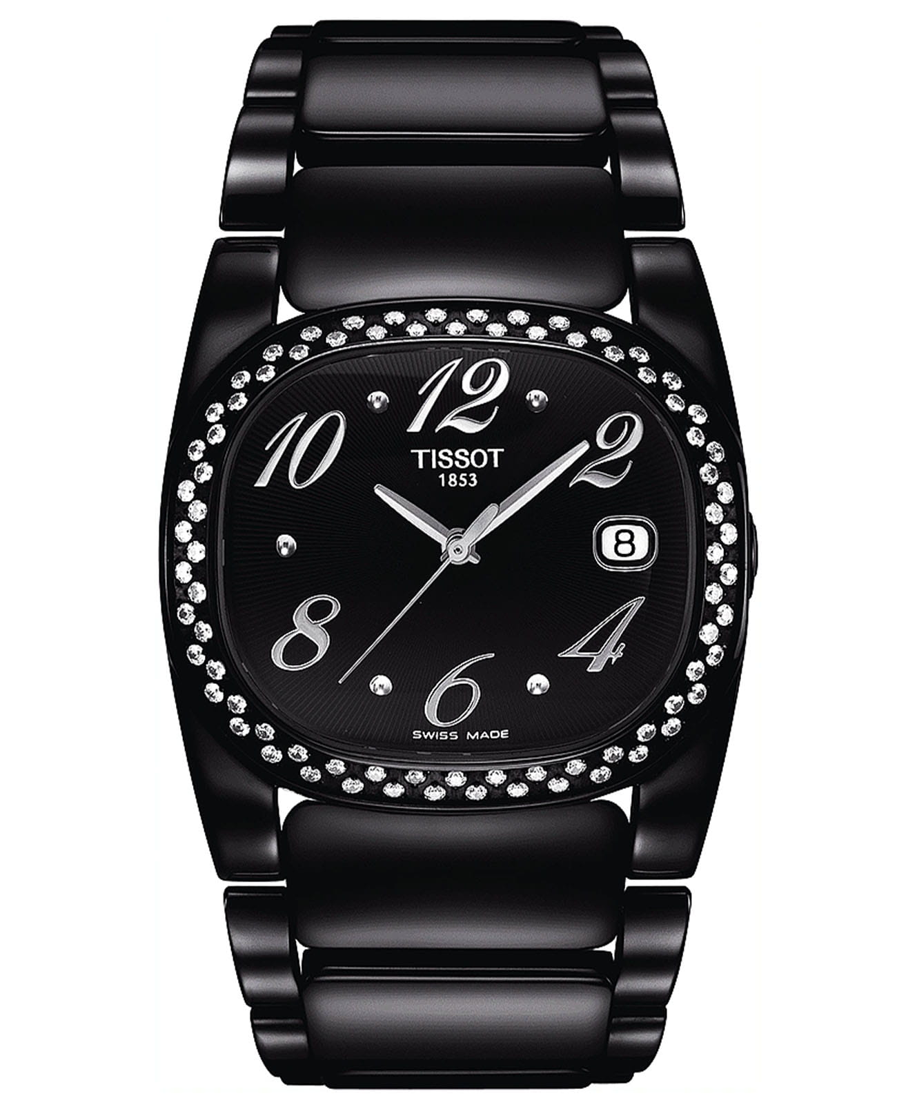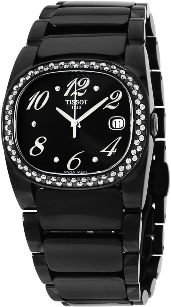 Женские швейцарские часы Tissot T-Trend T009.310.11.057.02 с бриллиантами. Корпус с сапфировым стекломСапфировое стеклоПрочный и надёжный материал из кристалла сапфира синтетического происхождения, характеризующийся особой твёрдостью и устойчивостью к царапинам и повреждениям., устойчивым к появлению царапин и обладающее высокой прозрачностью. Индикация даты. EOL – это специальная система, уведомляющая владельца кварцевых часов о том, что необходимо заменить элемент питания. В оснащенных данной системой часах примерно за 2 недели до полного истощения энергии батарейки секундная стрелка начинает вести себя особым образом: перестает ходить четко посекундно, а ждет 4 секунды и перепрыгивает вперед сразу на 4 (иногда 2) деления. Тем самым, часы дают понять, что в них пора менять батарейку. Нержавеющая сталь с PVDPVDУльтратонкое покрытие наносится в технике вакуумного напыления, сочетает в себе нитрид титана особой прочности со слоем золота или оксида хрома. Несёт в себе декоративную или защитную функцию. покрытием.
