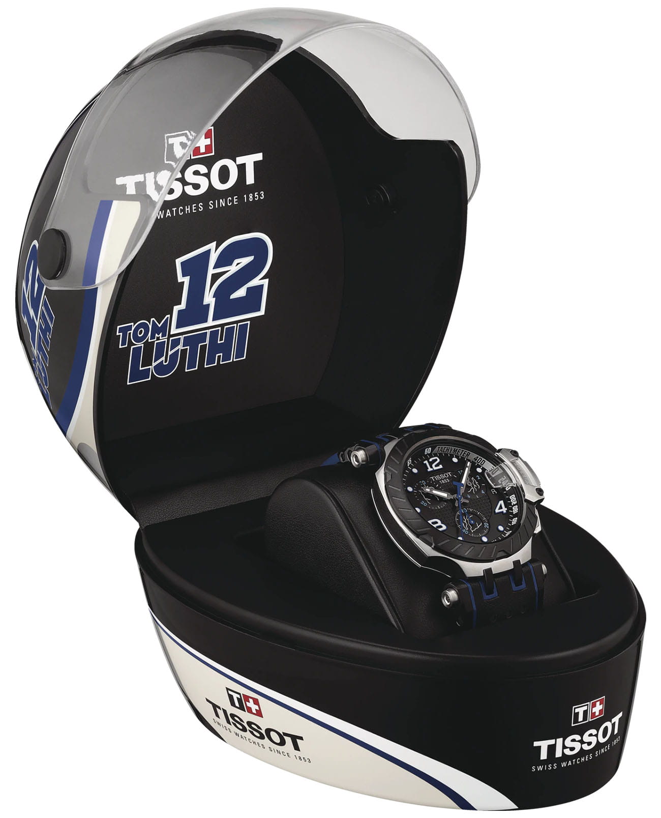 Швейцарские мужские часы Limited Edition из коллекции T-Race отличаются дерзким спортивным стилем, аксессуар, посвящённый мотогонщику Томасу Люти, выпускается в ограниченном количестве - 1212 экземпляров.