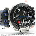 Задняя крышка имеет гравировку - номер "12", под которым выступает знаменитый спортсмен. Броская модель с оригинальным исполнением циферблата станет отличительной деталью вашего образа, динамичности придают синие элементы. Всё напоминает о гоночных мотоциклах. Необычный безельБезельВнешний ободок, закрепляющий стекло. В спортивных часах так называется поворотное кольцо с делениями на циферблате, выполняет роль таймера – замеряет отрезки времени на шкале. Неподвижный безель – элемент декора. Однонаправленно вращающийся безель на дайверских часах позволяет фиксировать моменты погружения и выныривания на поверхность. имитирует тормозной диск, счётчики хронографаХронографФункция позволяет измерять отрезки времени с особой точностью: часы, минуты, секунды. Верным признаком хронографа является наличие на циферблате 3 дополнительных окошек-счётчиков. сделаны под приборную панель, узор ремешка навевает мысли о протекторе шины. Высокую точность хода обеспечивает кварцевый калибр ETA G10.212. Сапфировое стекло с антибликовым покрытием. Чёрное PVD-покрытиеPVDУльтратонкое покрытие наносится в технике вакуумного напыления, сочетает в себе нитрид титана особой прочности со слоем золота или оксида хрома. Несёт в себе декоративную или защитную функцию.. Люминесцентная подсветкаЛюминесцентное покрытиеПозволяет считывать показания времени в темноте. Производители наносят на стрелки, часовые индексы, безель или поверхность циферблата светонакопительный состав, дающий холодное свечение.. Водонепроницаемость 100 метров. Секундомер, тахиметрТахиметрРазмеченная шкала, располагается на ободке или безеле часов. Тахиметр позволяет рассчитать скорость на определённом участке пути, расстояние измеряется в километрах или милях., отображение даты. Эксклюзивная упаковка в виде шлема. Габариты: 47,6 x 43 x 12,3 мм.