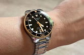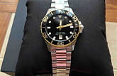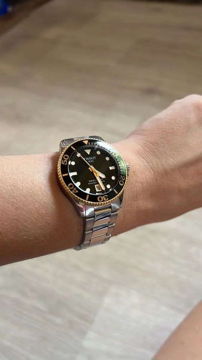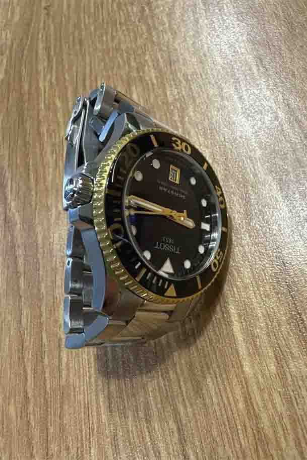 Модель T120.210.21.051.00 — женский швейцарский дайвер с корпусом 36 мм из 316L нержавеющей стали с золотистым PVD-покрытиемPVDУльтратонкое покрытие наносится в технике вакуумного напыления, сочетает в себе нитрид титана особой прочности со слоем золота или оксида хрома. Несёт в себе декоративную или защитную функцию. и браслетом из того же материала. Надёжный швейцарский кварцевый механизм гарантирует точность, а водонепроницаемость до 30 bar (300 м) позволяет погружаться без опасений. Чёрный циферблат защищён сапфировым стекломСапфировое стеклоПрочный и надёжный материал из кристалла сапфира синтетического происхождения, характеризующийся особой твёрдостью и устойчивостью к царапинам и повреждениям. с антибликовым покрытиемАнтибликовое покрытиеСлой оксида металла в 0,13-0,3 микрон, благодаря которому стекло часов не бликует и не отражает свет. Антибликовое покрытие уменьшает отражение света в 10 раз, обеспечивая отличную читаемость показателей циферблата.. Удобная раскладная застёжкаРаскладная застёжкаТакой тип застёжки используется только на браслетах из металла. Она никогда не раскрывается полностью, происходит разделение на 2 и более частей. Раскладывающая застёжка снизит вероятность потери часов к минимуму. и uni-directional вращающийся безель подчёркивают профессиональный характер модели.