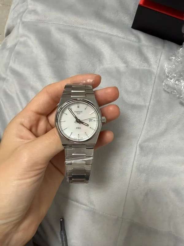 Женские наручные часы Tissot PRX T137.210.11.111.00 сочетают в себе элегантный дизайн и высокое качество исполнения. Модель обладает тонким корпусом диаметром 35 мм, изготовленным из нержавеющей стали, что обеспечивает отличную устойчивость к внешним воздействиям. Браслет выполнен из нержавеющей стали с интегрированным дизайном на застёжка «бабочка» с кнопкамиЗастёжка "бабочка"Такой вид застёжки дополняется предохранителями, помогающими избежать случайного раскрытия браслета. Обладают изящным исполнением. , гарантирующей комфортное ношение и удобство использования. Циферблат выполнен из натурального перламутра, который уникален для каждой модели, добавляя особую изысканность каждому экземпляру. Для защиты перламутрового циферблата используется сапфировое стеклоСапфировое стеклоПрочный и надёжный материал из кристалла сапфира синтетического происхождения, характеризующийся особой твёрдостью и устойчивостью к царапинам и повреждениям. с антибликовым покрытиемАнтибликовое покрытиеСлой оксида металла в 0,13-0,3 микрон, благодаря которому стекло часов не бликует и не отражает свет. Антибликовое покрытие уменьшает отражение света в 10 раз, обеспечивая отличную читаемость показателей циферблата., обеспечивающее превосходную защиту от царапин и четкое чтение времени при любых условиях освещения. Стрелки с люминесцентным покрытиемЛюминесцентное покрытиеПозволяет считывать показания времени в темноте. Производители наносят на стрелки, часовые индексы, безель или поверхность циферблата светонакопительный состав, дающий холодное свечение.. Часы работают на швейцарском кварцевом механизме, что гарантирует точное время без необходимости подзаводки. Водонепроницаемость данных моделей составляет 10 атмосфер (100 метров), что позволяет использовать их при плавании и других водных видах спорта, однако не рекомендуется для глубоководного дайвинга. Tissot PRX — это часы для тех, кто ценит стильный ретро-дизайн и современные технологии, подходящие как для повседневного использования, так и для особых случаев.