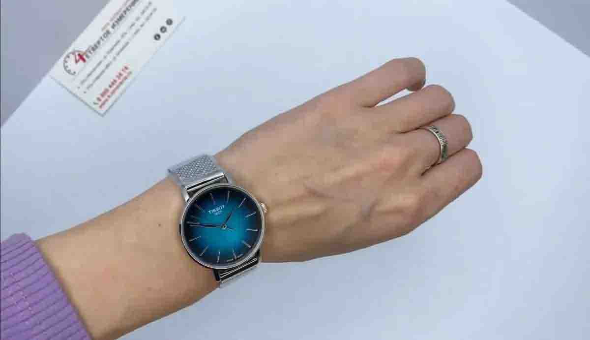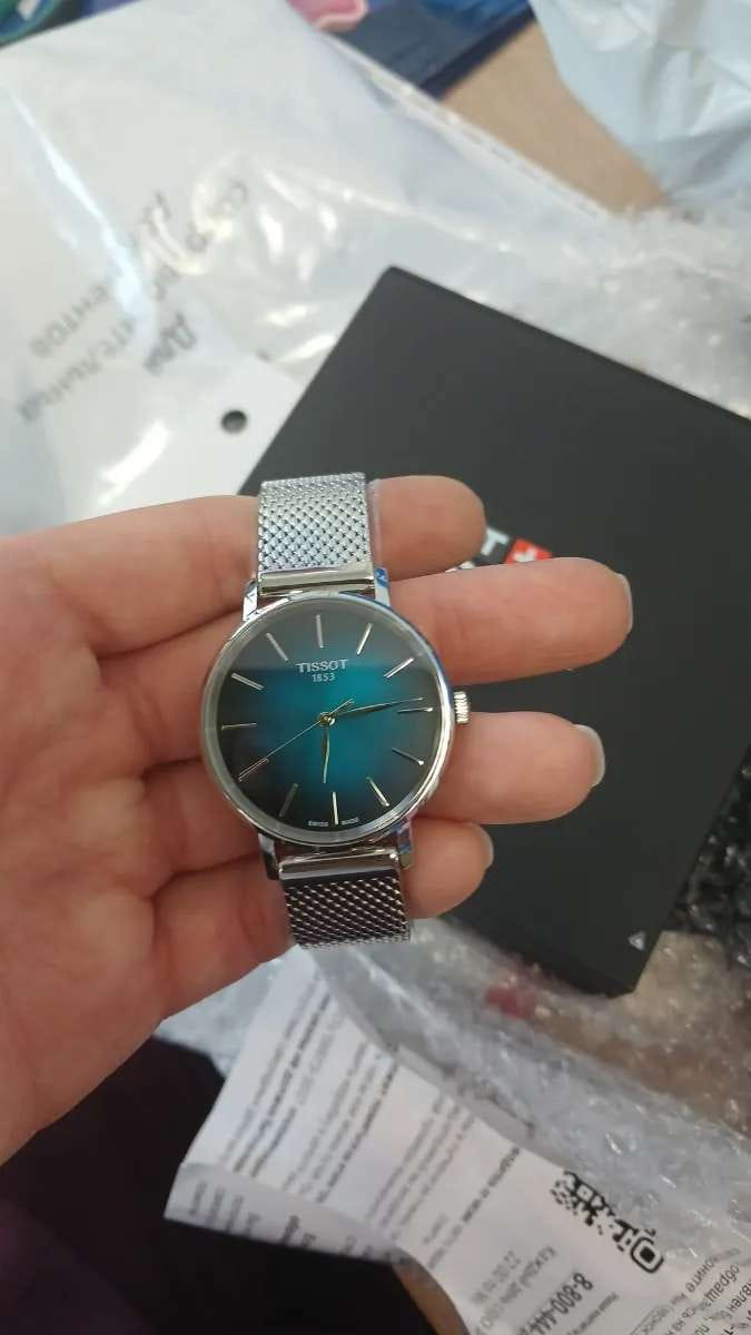 Tissot Everytime Lady T143.210.11.091.00 – элегантные женские часы, сочетающие современный дизайн и надёжность. Корпус диаметром 34 мм и толщиной 6,92 мм выполнен из нержавеющей стали 316L, обеспечивая долговечность и устойчивость к коррозии. Градиентный зелёно-чёрный циферблат придаёт модели уникальный и стильный вид, а его поверхность защищена сапфировым стекломСапфировое стеклоПрочный и надёжный материал из кристалла сапфира синтетического происхождения, характеризующийся особой твёрдостью и устойчивостью к царапинам и повреждениям., устойчивым к царапинам.
