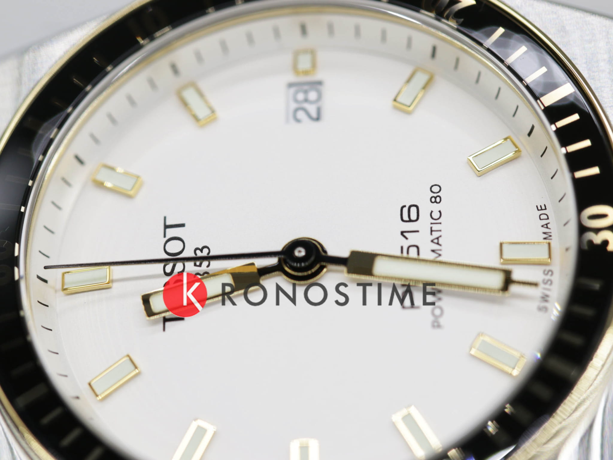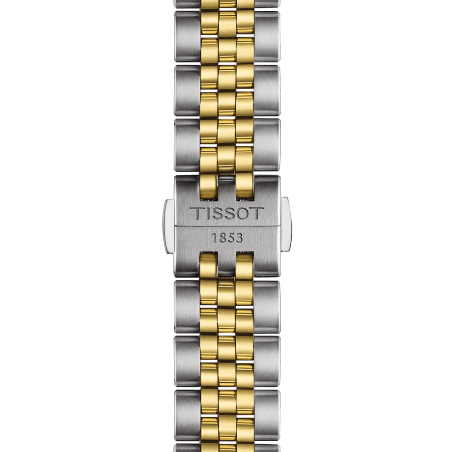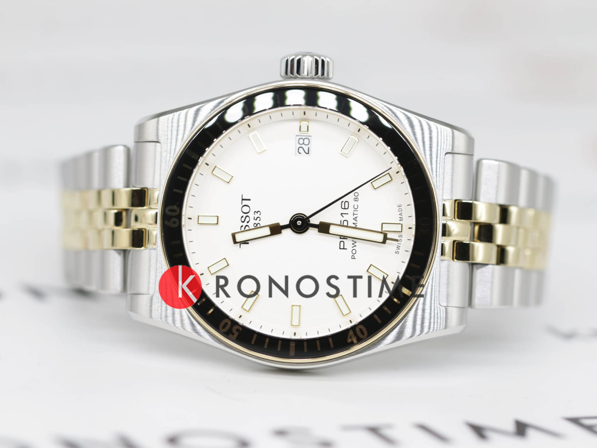 Tissot PR516 Powermatic 80 (модель T149.407.22.011.00) – это гармоничное сочетание классического дизайна и современных технологий. Корпус диаметром 38 мм выполнен из нержавеющей стали 316L с жёлтым PVD-покрытиемPVDУльтратонкое покрытие наносится в технике вакуумного напыления, сочетает в себе нитрид титана особой прочности со слоем золота или оксида хрома. Несёт в себе декоративную или защитную функцию., придающим часам элегантный двухцветный вид. Белый циферблат защищён сапфировым стекломСапфировое стеклоПрочный и надёжный материал из кристалла сапфира синтетического происхождения, характеризующийся особой твёрдостью и устойчивостью к царапинам и повреждениям. с антибликовым покрытиемАнтибликовое покрытиеСлой оксида металла в 0,13-0,3 микрон, благодаря которому стекло часов не бликует и не отражает свет. Антибликовое покрытие уменьшает отражение света в 10 раз, обеспечивая отличную читаемость показателей циферблата., обеспечивающим превосходную читаемость. Внутри установлен автоматический механизм Powermatic 80Powermatic 80Эксклюзивный калибр от швейцарской компании ETA с увеличенным запасом хода до 80 часов за счёт удлинённой заводной пружины. Характеризуется улучшенной системой спуска со сниженным трением. с запасом хода до 80 часов, оснащённый инновационной пружиной Nivachron™Nivachron™Специально разработанный инновационный сплав Nivachron™ повышает устойчивость часов к воздействию магнитных полей., повышающей устойчивость к магнитным полям и ударам. Браслет из нержавеющей стали с жёлтым PVD-покрытием оснащён застёжкой 'бабочка'Застёжка "бабочка"Такой вид застёжки дополняется предохранителями, помогающими избежать случайного раскрытия браслета. Обладают изящным исполнением. , обеспечивающей надёжную фиксацию и комфорт при ношении. Водонепроницаемость до 10 бар (100 метров) позволяет использовать часы при плавании и других водных активностях.