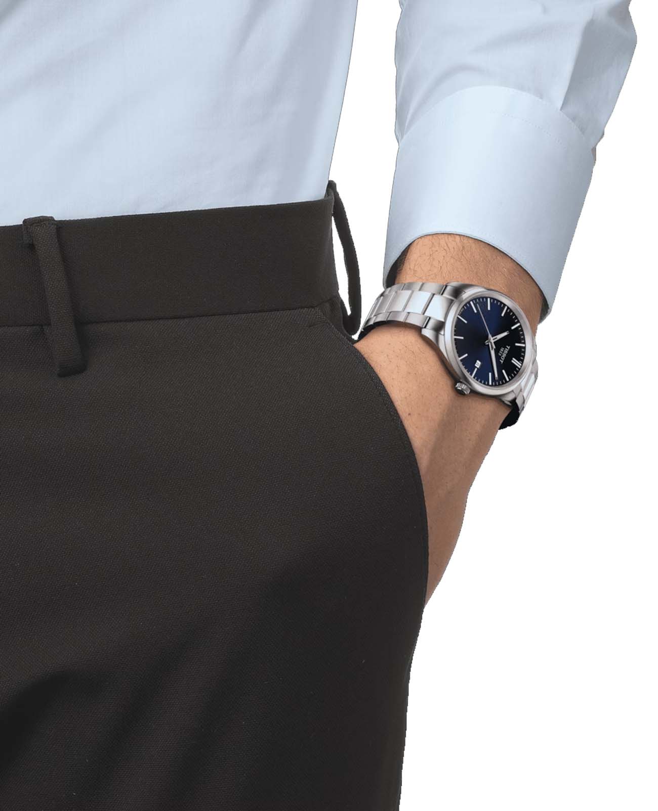 Мужские швейцарские часы Tissot PR 100 T150.410.11.041.00, кварцевый механизм с высокой точностью. Сапфировое стеклоСапфировое стеклоПрочный и надёжный материал из кристалла сапфира синтетического происхождения, характеризующийся особой твёрдостью и устойчивостью к царапинам и повреждениям. устойчивое к появлению царапин, обладающее высокой прозрачностью. Корпус часов изготовлен из нержавеющей стали. Стрелки с люминесцентным покрытиемЛюминесцентное покрытиеПозволяет считывать показания времени в темноте. Производители наносят на стрелки, часовые индексы, безель или поверхность циферблата светонакопительный состав, дающий холодное свечение.. Окошко даты в положении 3 часов. Класс водозащиты: 100 метров, позволит плавать, нырять и заниматься другими водными видами спорта. Стальной браслет на застёжке-бабочке с кнопкамиЗастёжка "бабочка"Такой вид застёжки дополняется предохранителями, помогающими избежать случайного раскрытия браслета. Обладают изящным исполнением. .