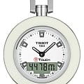 Tissot T-Pocket Touch T857.420.19.011.00 — это многофункциональные карманные часы. Модель состоит из серебристо-бежевой нержавеющей стали и белого циферблата, защищенного сапфировым стекломСапфировое стеклоПрочный и надёжный материал из кристалла сапфира синтетического происхождения, характеризующийся особой твёрдостью и устойчивостью к царапинам и повреждениям., на котором расположен дисплей. Через него можно использовать будильникБудильникБуди́льник — часы, в заданный момент времени подающие звуковой, световой и/или в редких случаях другой сигнал., GMTGMTОтображение времени второго часового пояса.Такая функция особенно актуальна для путешественников и бизнесменов,которые общаются с людьми из разных стран,теперь вы всегда будете знать,какой час у вашего партнёра или близкого человека., барометр, второй часовой поясВторой часовой поясФункция, позволяющая отображать время двух часовых поясов одновременно., термометр, высотомер, секундомерСекундомерСекундоме́р — прибор, способный измерять интервалы времени с точностью до долей секунды., хронографХронографФункция позволяет измерять отрезки времени с особой точностью: часы, минуты, секунды. Верным признаком хронографа является наличие на циферблате 3 дополнительных окошек-счётчиков., шагомерШагомерШагоме́р или педо́метр — измерительный прибор для подсчёта количества сделанных шагов (или пар шагов) при ходьбе или беге., вечный календарьВечный календарьКлассическое часовое усложнение, представляющее собой календарь, рассчитанный на несколько лет вперёд (стандартно – до 2099 года). Определяет текущую дату, день недели, месяц., мировое времяМировое время Полезное часовое усложнение, отображающее время в основных городах и известных областях по всему миру, оно связано с часовыми поясами, удобно для путешественников и бизнесменов. . БезельБезельВнешний ободок, закрепляющий стекло. В спортивных часах так называется поворотное кольцо с делениями на циферблате, выполняет роль таймера – замеряет отрезки времени на шкале. Неподвижный безель – элемент декора. Однонаправленно вращающийся безель на дайверских часах позволяет фиксировать моменты погружения и выныривания на поверхность. с PVD-покрытиемPVDУльтратонкое покрытие наносится в технике вакуумного напыления, сочетает в себе нитрид титана особой прочности со слоем золота или оксида хрома. Несёт в себе декоративную или защитную функцию.. Класс водозащиты: 100 метров, позволит плавать, нырять и заниматься другими водными видами спорта. Часы имеют EOLEOLПредставляет собой систему, уведомляющую владельца часов о необходимости замены элемента питания. За 2 недели до полного разряда батарейки секундная стрелка перестаёт ходить чётко и начинает перепрыгивать на 3-4 деления.. Стрелки и метки с люминесцентным покрытиемЛюминесцентное покрытиеПозволяет считывать показания времени в темноте. Производители наносят на стрелки, часовые индексы, безель или поверхность циферблата светонакопительный состав, дающий холодное свечение..