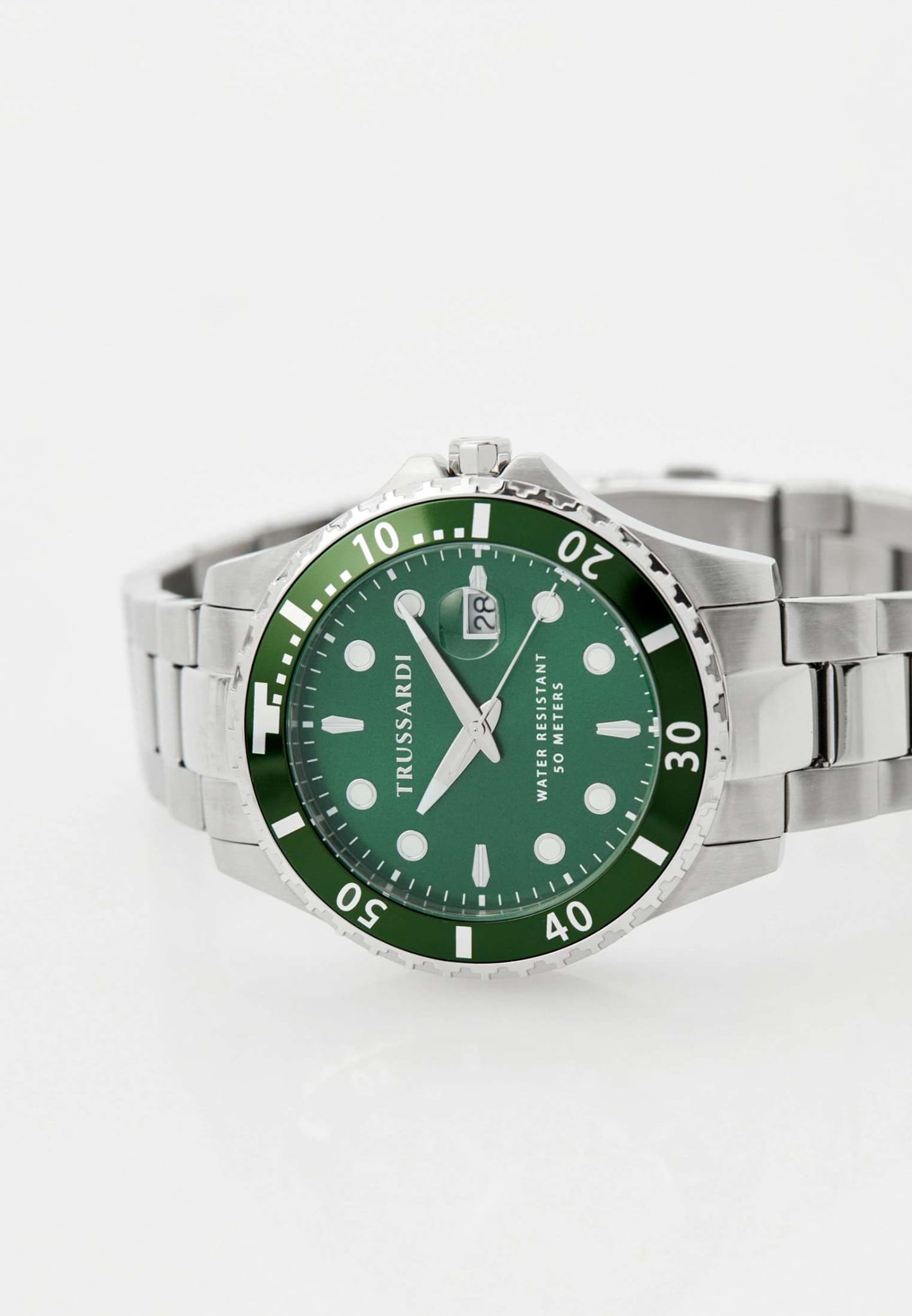 Итальянские мужские часы Trussardi City Life R2453169004 - это стильный мужской аксессуар, который сочетает элегантный дизайн и практичность. Корпус выполнен из нержавеющей стали с безелемБезельВнешний ободок, закрепляющий стекло. В спортивных часах так называется поворотное кольцо с делениями на циферблате, выполняет роль таймера – замеряет отрезки времени на шкале. Неподвижный безель – элемент декора. Однонаправленно вращающийся безель на дайверских часах позволяет фиксировать моменты погружения и выныривания на поверхность. с IP-покрытиемIP-покрытиеМетод ионного напыления. Демонстрирует повышенную устойчивость к истиранию, окислению и химическим веществам. Под воздействием высокого давления и температуры около 1500°C молекулы металла надёжно соединяются с частицами корпуса часов., что обеспечивает долговечность и утончённый внешний вид. Надежное минеральное стеклоМинеральное стеклоМинеральное стекло представляет собой искусственно выращенный минерал кварца. Такое стекло отличается особой устойчивостью к повреждениям и царапинам. Уступает по некоторым качествам сапфировому стеклу. защищает циферблат от царапин и обеспечивает долговечность. Модель оснащена кварцевым механизмом, обеспечивающим высокую точность хода. Браслет из нержавеющей стали с раскладной застёжкойРаскладная застёжкаТакой тип застёжки используется только на браслетах из металла. Она никогда не раскрывается полностью, происходит разделение на 2 и более частей. Раскладывающая застёжка снизит вероятность потери часов к минимуму. обеспечивает комфортное ношение. Водозащита 50 метров позволит защитить корпус от случайных брызг или капель дождя. Окошко даты в положении 3 часов. Стрелки метки оснащены люминесцентным покрытиемЛюминесцентное покрытиеПозволяет считывать показания времени в темноте. Производители наносят на стрелки, часовые индексы, безель или поверхность циферблата светонакопительный состав, дающий холодное свечение., обеспечивающим отличную видимость даже при слабом освещении. Эта модель – отличный выбор для тех, кто ищет сочетание стиля, качества и функциональности. Часы станут не только полезным аксессуаром, но и выразительным элементом вашего имиджа.