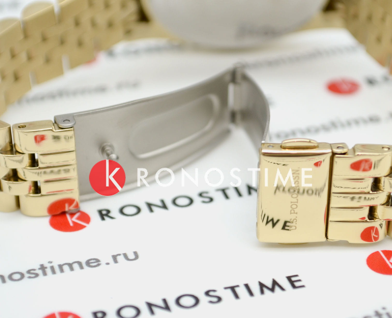 Женские часы U.S. Polo Assn. Fundamental USPA2041-05, кварцевый механизм с высокой точностью. Минеральное стеклоМинеральное стеклоМинеральное стекло представляет собой искусственно выращенный минерал кварца. Такое стекло отличается особой устойчивостью к повреждениям и царапинам. Уступает по некоторым качествам сапфировому стеклу. устойчивое к появлению царапин, обладающее высокой прозрачностью. Корпус и браслет изготовлены из нержавеющей стали с IP-покрытиемIP-покрытиеМетод ионного напыления. Демонстрирует повышенную устойчивость к истиранию, окислению и химическим веществам. Под воздействием высокого давления и температуры около 1500°C молекулы металла надёжно соединяются с частицами корпуса часов.. Стрелки и метки с люминесцентным покрытиемЛюминесцентное покрытиеПозволяет считывать показания времени в темноте. Производители наносят на стрелки, часовые индексы, безель или поверхность циферблата светонакопительный состав, дающий холодное свечение.. Класс водозащиты: 50 метров, позволит защитить корпус от случайных брызг или капель дождя. Стальной браслет на застёжке «бабочка» с кнопкамиЗастёжка "бабочка"Такой вид застёжки дополняется предохранителями, помогающими избежать случайного раскрытия браслета. Обладают изящным исполнением. .