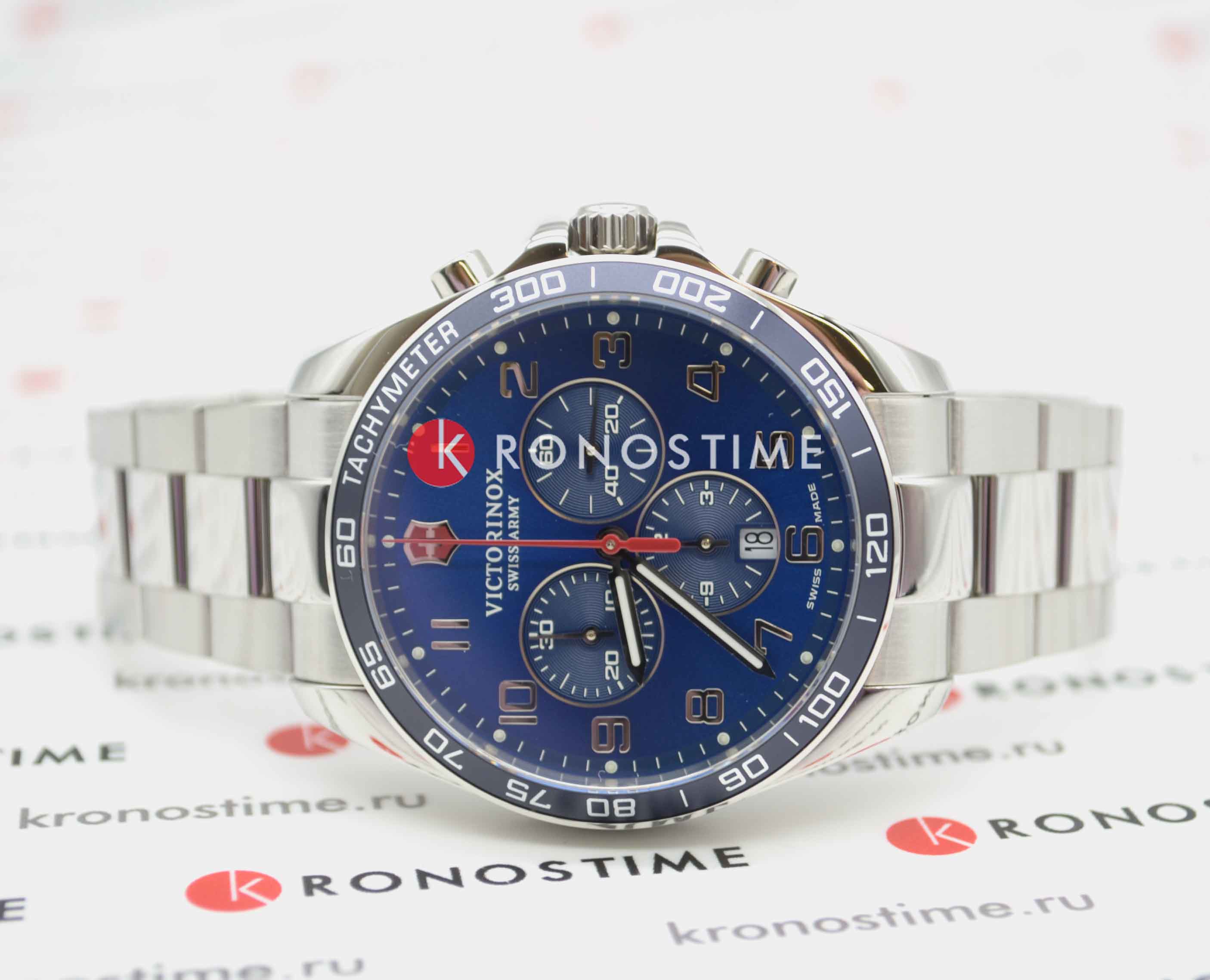 Мужские швейцарские часы-хронографХронографФункция позволяет измерять отрезки времени с особой точностью: часы, минуты, секунды. Верным признаком хронографа является наличие на циферблате 3 дополнительных окошек-счётчиков. Victorinox Fieldforce Chronograph 241901 с надёжным кварцевым механизмом. Сапфировое стеклоСапфировое стеклоПрочный и надёжный материал из кристалла сапфира синтетического происхождения, характеризующийся особой твёрдостью и устойчивостью к царапинам и повреждениям. с трёхслойным антибликовым покрытием. Корпус часов выполнен из нержавеющей стали 316L. Стальной браслет на раскладной застёжкеРаскладная застёжкаТакой тип застёжки используется только на браслетах из металла. Она никогда не раскрывается полностью, происходит разделение на 2 и более частей. Раскладывающая застёжка снизит вероятность потери часов к минимуму.. Влагозащита: 100 метров, позволит плавать, нырять и заниматься другими водными видами спорта. Окошко даты находится в положении 6 часов, стрелки и метки с люминесцентным покрытиемЛюминесцентное покрытиеПозволяет считывать показания времени в темноте. Производители наносят на стрелки, часовые индексы, безель или поверхность циферблата светонакопительный состав, дающий холодное свечение., тахиметрТахиметрРазмеченная шкала, располагается на ободке или безеле часов. Тахиметр позволяет рассчитать скорость на определённом участке пути, расстояние измеряется в километрах или милях..