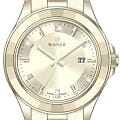 Женские кварцевые часы Wainer WA.18020-F сочетают в себе элегантный дизайн и высокое качество исполнения. Корпус выполнен из гипоаллергенной нержавеющей стали с PVD-покрытиемPVDУльтратонкое покрытие наносится в технике вакуумного напыления, сочетает в себе нитрид титана особой прочности со слоем золота или оксида хрома. Несёт в себе декоративную или защитную функцию. золотистого цвета, диаметром 33 мм и толщиной 8 мм, обеспечивает прочность и долговечность. Циферблат украшен фирменным логотипом Wainer в положении 12 часов и цирконами. Метки в виде штрихов. Минеральное стеклоМинеральное стеклоМинеральное стекло представляет собой искусственно выращенный минерал кварца. Такое стекло отличается особой устойчивостью к повреждениям и царапинам. Уступает по некоторым качествам сапфировому стеклу. с сапфировым напылением защищает дисплей от царапин и механических повреждений. Стальной браслет с PVD-покрытиемPVDУльтратонкое покрытие наносится в технике вакуумного напыления, сочетает в себе нитрид титана особой прочности со слоем золота или оксида хрома. Несёт в себе декоративную или защитную функцию. на застёжке-бабочке с кнопкамиЗастёжка "бабочка"Такой вид застёжки дополняется предохранителями, помогающими избежать случайного раскрытия браслета. Обладают изящным исполнением. обеспечивает комфортное ношение на запястье. Окошко даты находится в положении 3 часа. Водонепроницаемость до 50 метров позволит защитить корпус от случайных брызг или капель дождя. Рифленая заводная головка с защитой. Wainer — это стильный и надежный аксессуар для тех, кто ценит швейцарское качество и современные технологии.