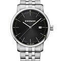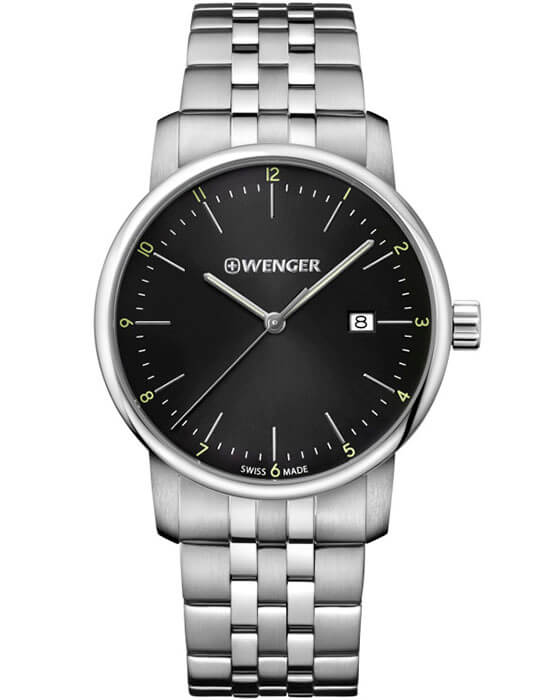 Швейцарские мужские часы в классическом стиле Wenger 01.1741.122, кварцевый механизм с высокой точностью. Класс водозащиты: 100 метров, позволит плавать, нырять и заниматься другими водными видами спорта. Корпус часов изготовлен из стали, серебристого цвета.