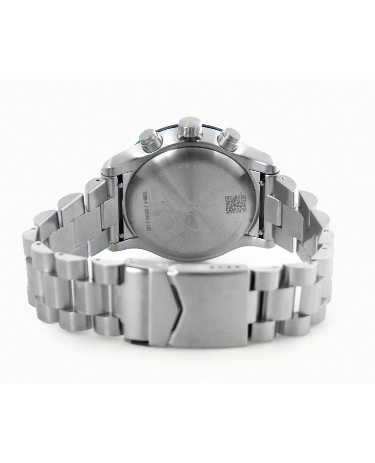 Мужские наручные часы-хронографХронографФункция позволяет измерять отрезки времени с особой точностью: часы, минуты, секунды. Верным признаком хронографа является наличие на циферблате 3 дополнительных окошек-счётчиков. Zeppelin Night Cruise 7288M4 сочетают в себе спортивный дизайн и надежность современных технологий. Модель обладает круглым корпусом диаметром 42 мм, изготовленным из нержавеющей стали с полированным/матовым покрытием, что обеспечивает высокую устойчивость к внешним воздействиям. Толщина корпуса составляет 14 мм. Браслет выполнен из нержавеющей стали с классической застежкой, гарантирующей комфортное ношение и безопасность. Зеленый циферблат оснащен шкалой с тахиметромТахиметрРазмеченная шкала, располагается на ободке или безеле часов. Тахиметр позволяет рассчитать скорость на определённом участке пути, расстояние измеряется в километрах или милях. по краю и дополнен малыми циферблатами для функций хронографа, а также окном даты на позиции «4 часов». Для защиты используется минеральное стеклоМинеральное стеклоМинеральное стекло представляет собой искусственно выращенный минерал кварца. Такое стекло отличается особой устойчивостью к повреждениям и царапинам. Уступает по некоторым качествам сапфировому стеклу. с антибликовым покрытиемАнтибликовое покрытиеСлой оксида металла в 0,13-0,3 микрон, благодаря которому стекло часов не бликует и не отражает свет. Антибликовое покрытие уменьшает отражение света в 10 раз, обеспечивая отличную читаемость показателей циферблата., обеспечивающее прочную защиту от царапин и оптимальную видимость циферблата даже при ярком свете. Часы работают на кварцевом механизме ETA G10.212, который гарантирует точное время без необходимости подзаводки. Водонепроницаемость часов достигает 10 атмосфер (100 метров), что позволяет использовать их во время плавания и других водных видов спорта, однако не рекомендуется для глубоководного дайвинга.