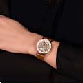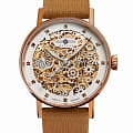 Женские наручные часы Zeppelin Princess of the Sky 7463-5 сочетают в себе элегантный дизайн и точность автоматического механизма. Модель обладает круглым корпусом диаметром 36 мм, изготовленным из нержавеющей стали с PVD-покрытиемPVDУльтратонкое покрытие наносится в технике вакуумного напыления, сочетает в себе нитрид титана особой прочности со слоем золота или оксида хрома. Несёт в себе декоративную или защитную функцию. и с кристаллической задней крышкой для глубокой демонстрации работы механизма. Браслет выполнен из высококачественной кожи, обеспечивающей комфортное ношение и стильный внешний вид. Циферблат скелетонирован, открывая вид на золотое скелетное движение, украшенное 12 кристаллами Swarovski, что добавляет особую роскошь и изящество. Для защиты используется минеральное стеклоМинеральное стеклоМинеральное стекло представляет собой искусственно выращенный минерал кварца. Такое стекло отличается особой устойчивостью к повреждениям и царапинам. Уступает по некоторым качествам сапфировому стеклу. с антибликовое покрытиеАнтибликовое покрытиеСлой оксида металла в 0,13-0,3 микрон, благодаря которому стекло часов не бликует и не отражает свет. Антибликовое покрытие уменьшает отражение света в 10 раз, обеспечивая отличную читаемость показателей циферблата., обеспечивающее прочную защиту от царапин и оптимальную видимость циферблата. Часы работают на автоматическом механизме, который заряжается за счет естественного движения руки пользователя, делая их автономными в использовании. Водонепроницаемость часов составляет 5 атмосфер (50 метров), что позволяет использовать их в повседневных условиях, однако не рекомендуется для плавания или дайвинга. Эта модель станет прекрасным дополнением как к повседневному, так и к вечернему образу благодаря своей элегантности и шарму.