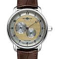 Мужские наручные автоматические часы Zeppelin ZEP-85685 из коллекции Friedrichshafen Automatic выполнены в классическом стиле и сочетают техническое мастерство с эстетикой ручной работы. Корпус круглой формы изготовлен из полированной нержавеющей стали и дополнен фирменными кольцами по краю — отличительной чертой бренда Zeppelin. Механизм — механический с автоподзаводом, калибр Miyota 82S7 , оснащённый 21 камнем, с частотой 21 600 полуколебаний в час и запасом хода до 42 часов. Прозрачная задняя крышка позволяет наблюдать за работой механизма, что подчёркивает его техническую проработку и стиль. Циферблат выполнен по технологии гильоше с узором Clous de Paris , придающим ему благородства. Цвет циферблата — золотистый гильоше с серебристыми элементами. Метки представлены арабскими цифрами, секундная стрелка вынесена на отдельный циферблат, а формат времени отображается в двух системах — 12-ти и 24-х часовой. Стрелки выполнены в стиле Breguet. Часы оснащены выпуклым минеральным стеклом повышенной прочности K1 минеральное стеклоМинеральное стеклоМинеральное стекло представляет собой искусственно выращенный минерал кварца. Такое стекло отличается особой устойчивостью к повреждениям и царапинам. Уступает по некоторым качествам сапфировому стеклу., устойчивым к мелким повреждениям. Заводная головка — рифлёная, из нержавеющей стали. Ремешок — из коричневой натуральной кожи с текстурой, имитирующей крокодилову кожу, дополнен классической застёжкой из нержавеющей стали. Водозащита — 50WR , что позволяет использовать часы в повседневных условиях без риска повреждения от случайных брызг воды. Габаритные размеры: диаметр 40 мм, толщина 11 мм, вес — 70 граммов. Это стильный и надёжный аксессуар для ценителей механических часов и тонких деталей дизайна.