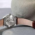 Мужские наручные автоматические часы Zeppelin ZEP-85901 из коллекции Friedrichshafen Automatic Power Reserve выполнены в классическом стиле и сочетают техническое мастерство с эстетикой ручной работы. Корпус круглой формы изготовлен из полированной нержавеющей стали и дополнен фирменными кольцами по краю — узнаваемым элементом бренда Zeppelin. Механизм — механический с автоподзаводом, оснащённый 26 камнями, с частотой 28 800 полуколебаний в час и запасом хода до 45 часов. Ретроградный указатель запаса хода добавляет функциональности и оригинальности. Прозрачная задняя крышка позволяет наблюдать за работой механизма, что подчёркивает его техническую проработку и стиль. Циферблат выполнен по технологии гильоше с узором Clous de Paris , придающим ему благородство. Цвет циферблата — белый гильоше. Метки представлены арабскими цифрами, формат времени отображается в двух системах — 12-ти и 24-х часовой. Окошко даты расположено в положении 3 часов. Часы оснащены выпуклым минеральным стеклом повышенной прочности K1 минеральное стеклоМинеральное стеклоМинеральное стекло представляет собой искусственно выращенный минерал кварца. Такое стекло отличается особой устойчивостью к повреждениям и царапинам. Уступает по некоторым качествам сапфировому стеклу., устойчивым к мелким повреждениям. Заводная головка — рифлёная, из нержавеющей стали. Ремешок — из коричневой натуральной кожи с текстурой, имитирующей крокодилову кожу, дополнен классической застёжкой из нержавеющей стали. Водозащита — 50WR , что позволяет использовать часы в повседневных условиях без риска повреждения от случайных брызг воды. Габаритные размеры: диаметр 42 мм, толщина 12 мм, вес — 85 граммов. Это стильный и надёжный аксессуар для ценителей механических часов и тонких деталей дизайна.